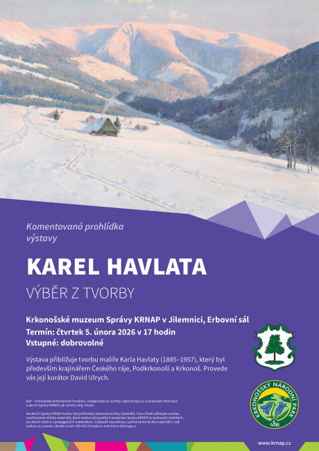 Krkonošské muzeum Správy KRNAP v Jilemnici srdečně zve na výstavu, která přibližuje tvorbu malíř Karla Havlaty (1885–1957). Známé jsou především jeho krajiny Českého ráje, Podkrkonoší a Krkonoš.